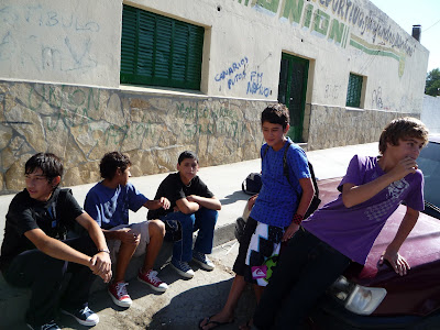 Y... mientras esperan el colectivo para viajar a Neuquen, los chicos de la novena se distraen relacionándose con las chicas de las comparsas. Ya falta poco para salir!